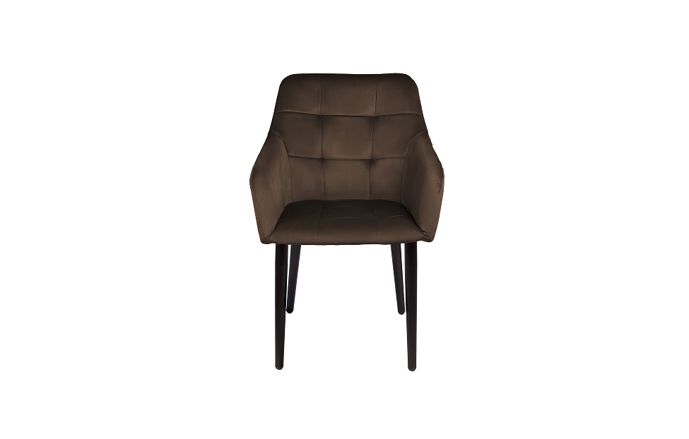 Стул-кресло Отэм прекрасно впишется в любой интерьер и комнату. Такой стул можно использовать как в качестве обеденного стула, так и в виде рабочего кресла к письменному столу. Обивка из велюра в актуальном коричневом оттенке прекрасно гармонирует с металлическими ножками черного цвета. Такие стулья украсят современные интерьеры, а также пространства в стиле эклектики.